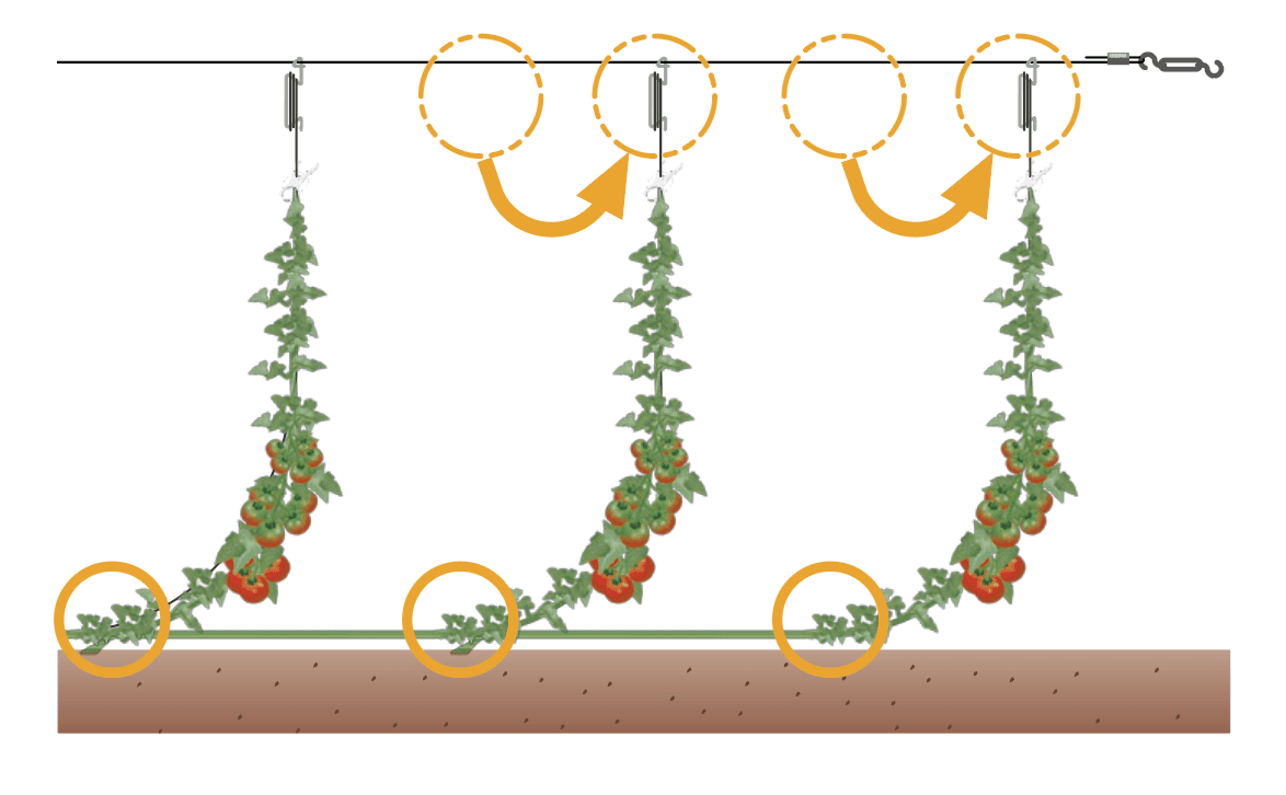 - 茎に直接誘引紐を巻きつける誘引方法に比べて、茎を折る可能性が少なくなります。