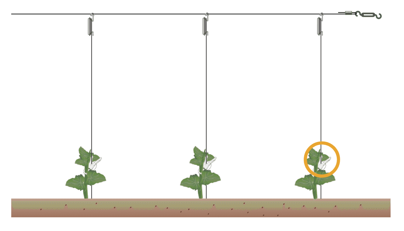 針金誘引フックとクキロックにて誘引する栽培方式。