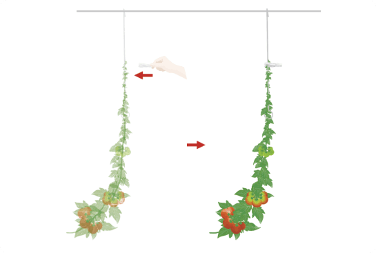 - 通常の縦紐誘引に比べ、収穫量アップが期待できます。